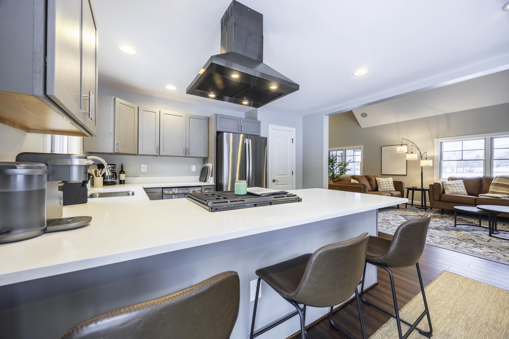 After a day of skiing or exploring Davis & Thomas, soak in the private hot tub or cozy up by the gas fireplace while watching a movie on the large smart TV.