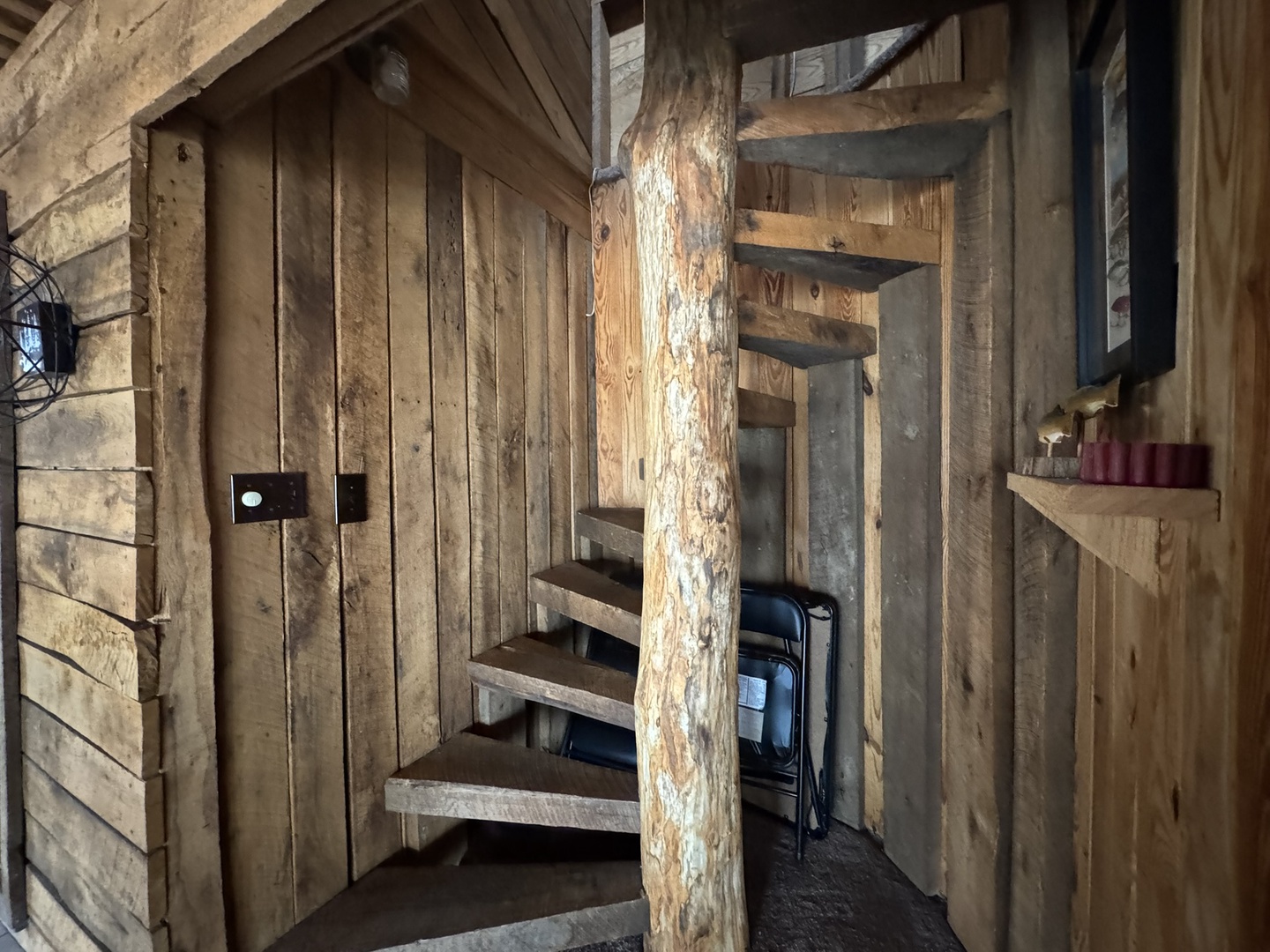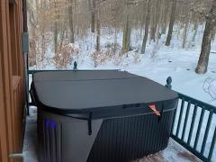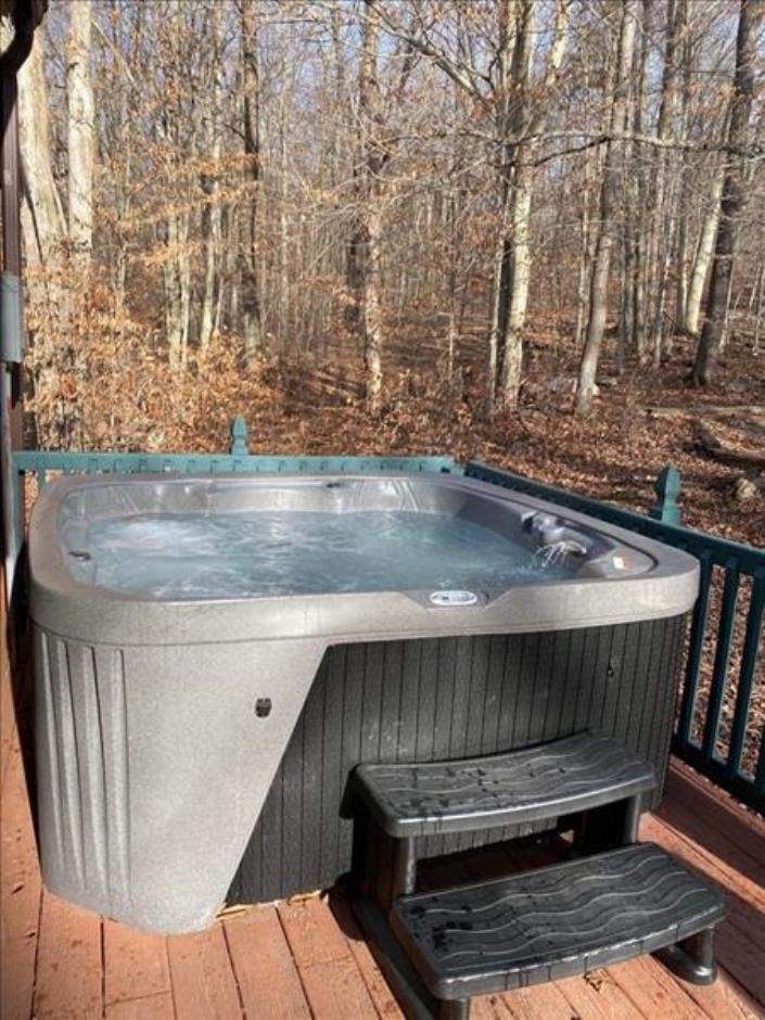 Cardinal Crest Cabin is an amazing relaxing paradise with post and beam construction, vaulted ceilings, a spiral staircase, sunken living room to give you a true comfy cabin feel. This home is also complete with amenities such as flat screen TVs, cable TV, electric fireplace, charcoal grill, full kitchen and outdoor picnic table, tree canopied fire pit area. Also has window AC units located in upstairs bedroom and in living room area.  Cardinal Crest has everything you need to unwind, relax in the hot tub and enjoy your outdoorsy cabin getaway!