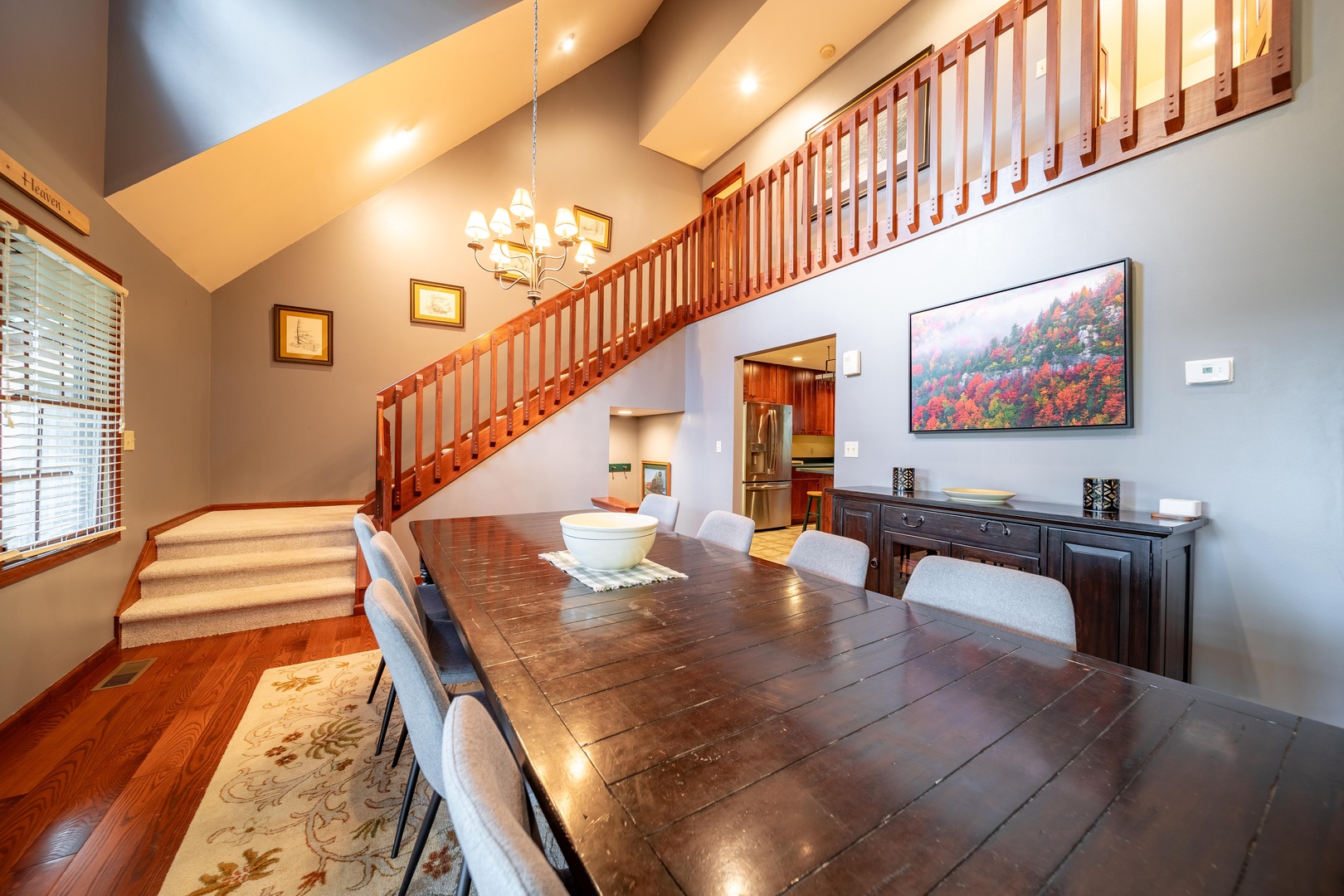 Holiday House is a private retreat that backs the Monongahela National Forest and is conveniently located between Davis and Canaan Valley.  Timberline and Canaan Ski resorts, a golf course, hiking trails, shopping, and restaurants are just minutes way.  This nicely furnished and fully equipped home provides everything you need for the perfect stay any time of the year. Nestled in the woods in the gated and private community of Northpoint, the 4 bed, 3.5 bath home comfortably sleeps ten.  Whether you are planning on enjoying the view on the deck or covered porches or cozying up by the woodburning fireplace to watch the leaves or snow fall, this home has all the amenities you need.