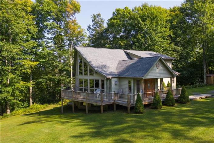 Outside, you will be greeted by a wraparound deck, gas grill and hot tub as well as an outdoor fire pit. The home is equipped with air conditioning for comfort during the summer season.
