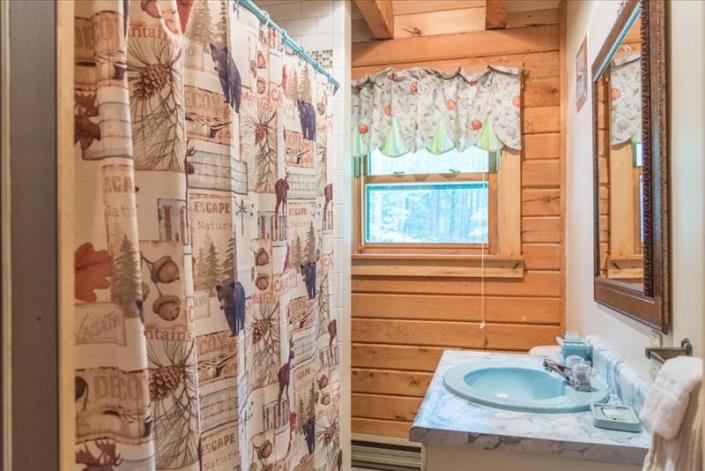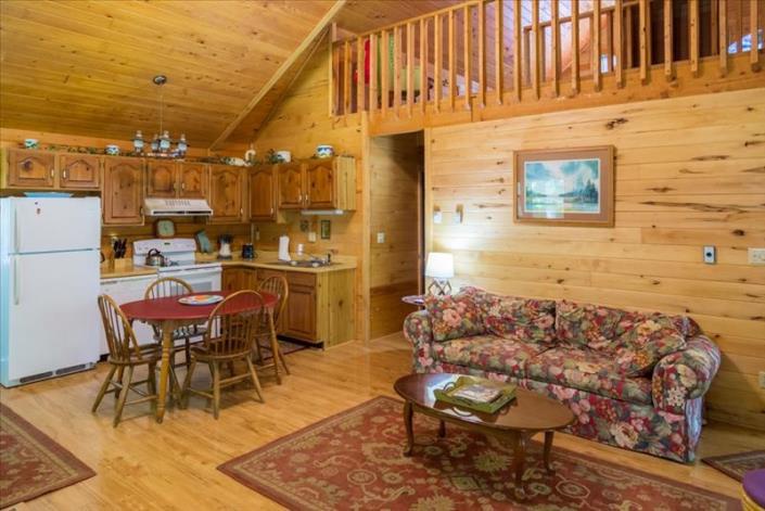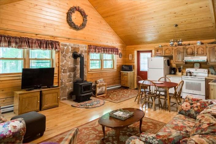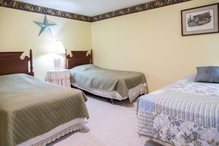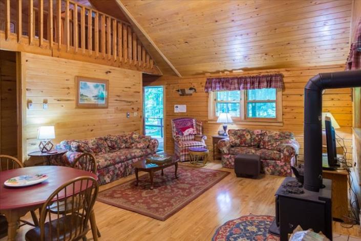 Open floor plan with a fully equipped kitchen and living room with freestanding wood stove. 2 bedrooms on main floor, 2 queens in loft and Lower-level TV room, 4th bedroom with 2 twins and one full sized bed.