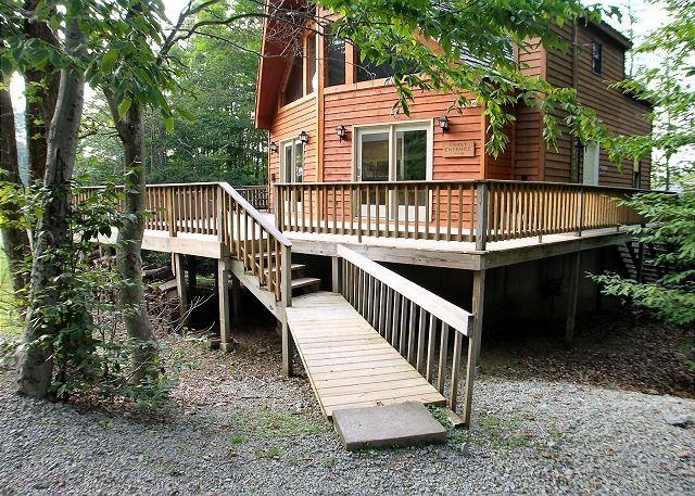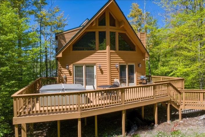 The home includes 2 King beds, 3 Queen beds, 2 Twins, and a Futon, plus Wi-Fi and an electric grill on the huge deck for outdoor dining and relaxation.